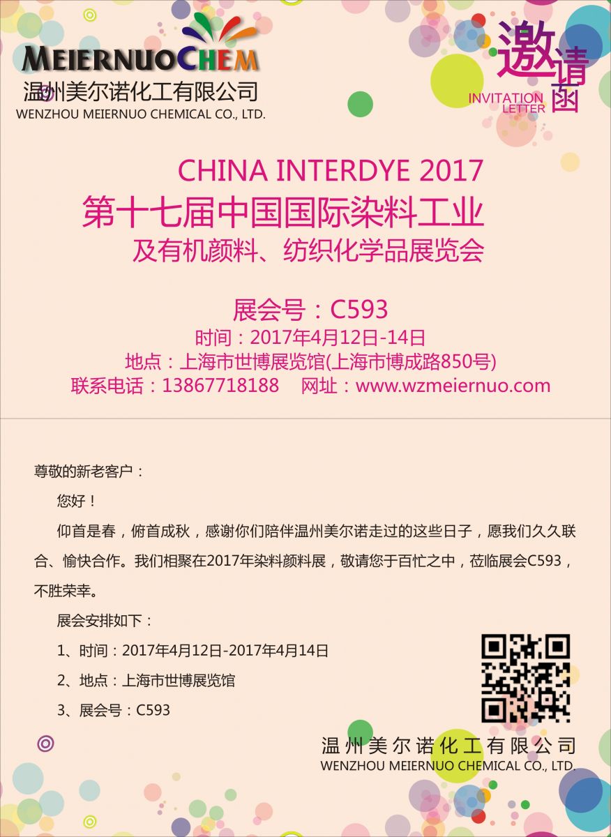 2017年第十七屆中國國際染料工業 及有機顏料、紡織化學品展覽會邀請函